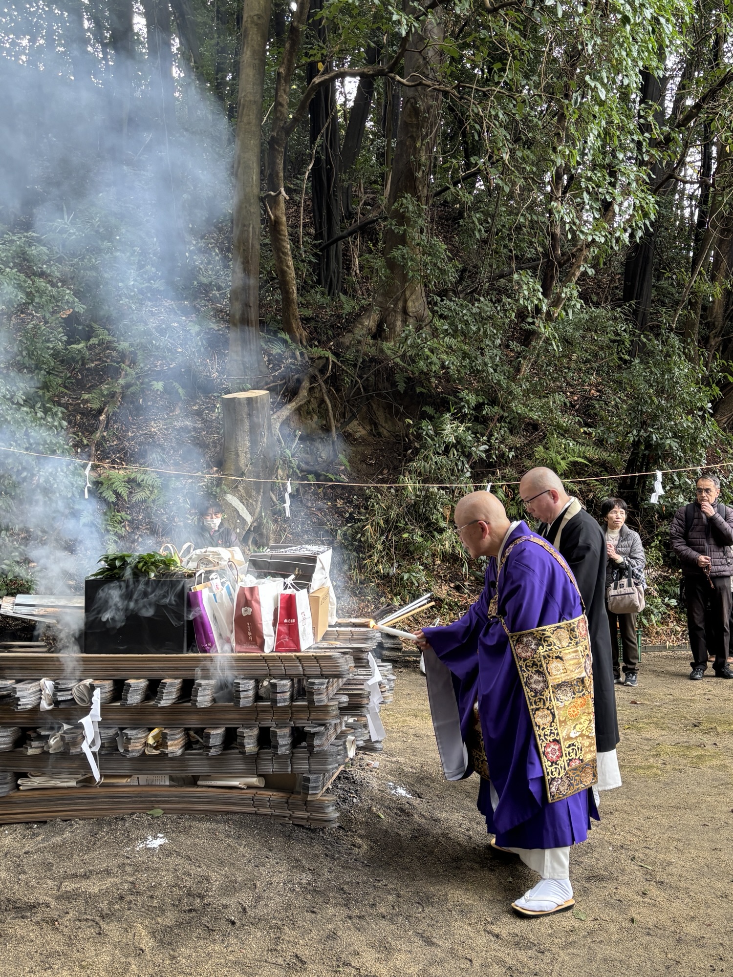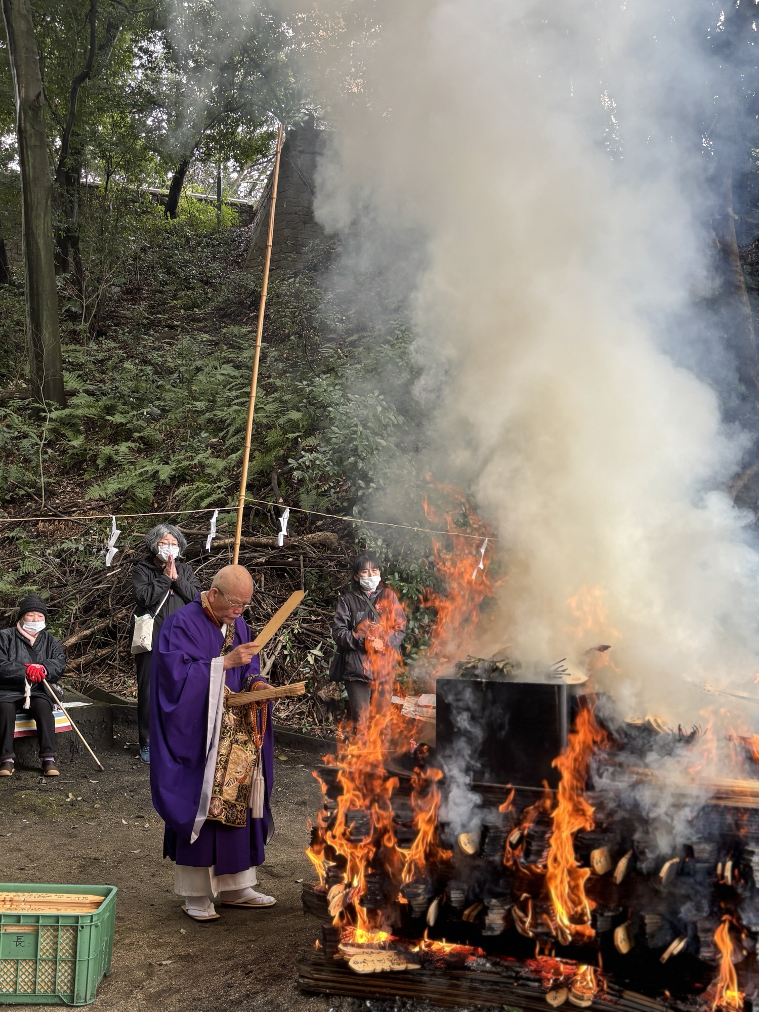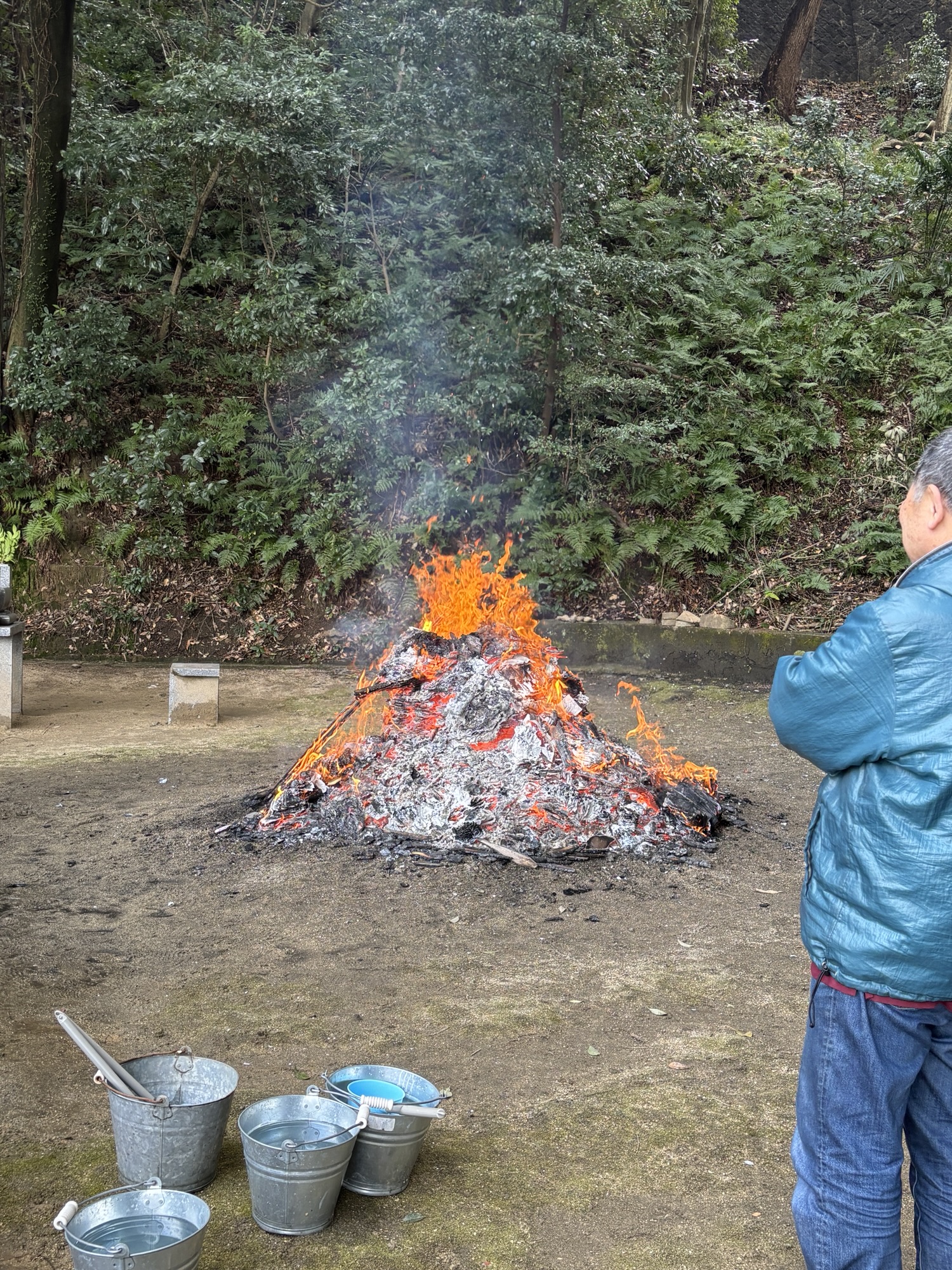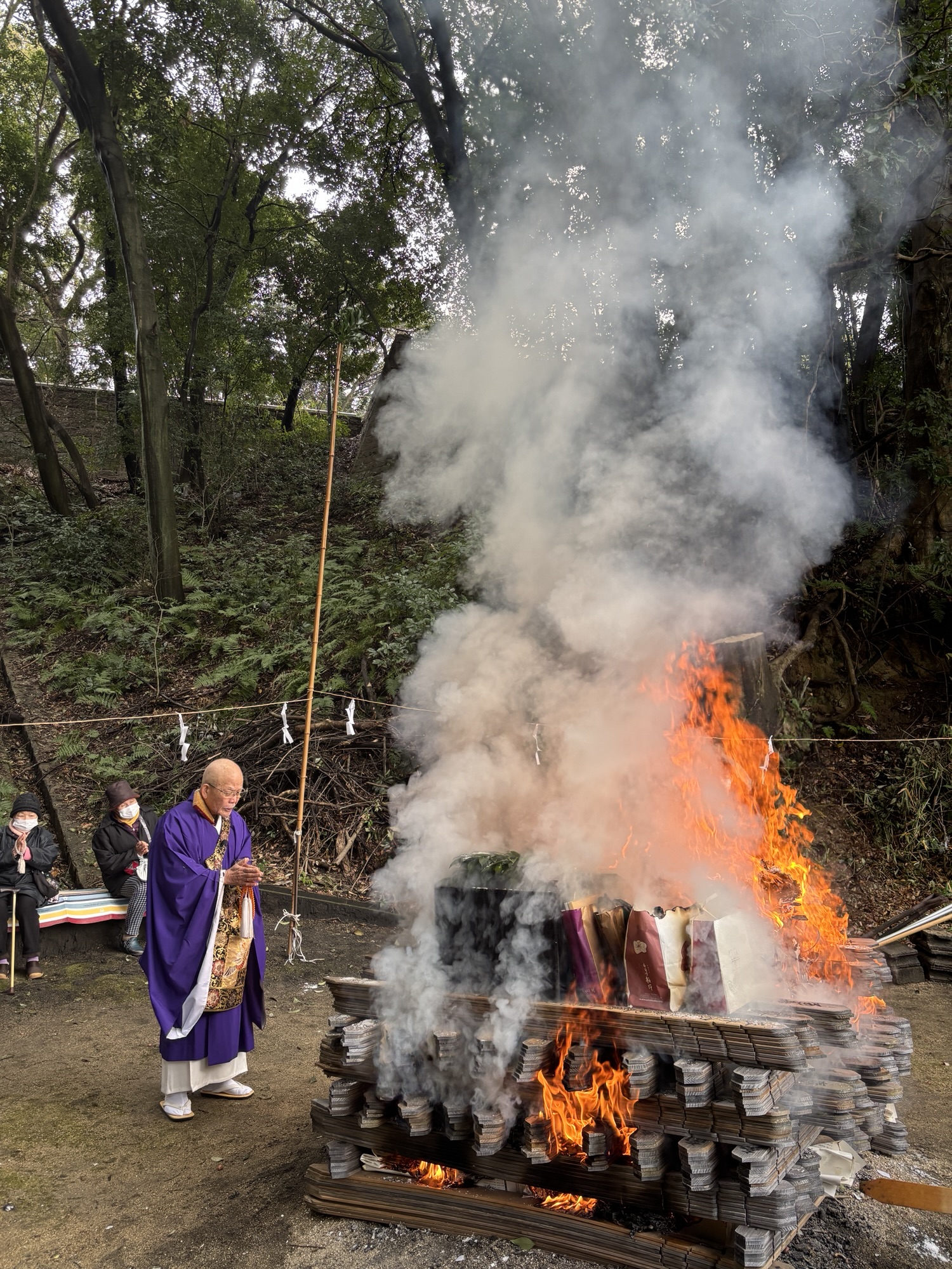 前日からの雨も上がり、寒さも抑えられてお焚き上げにはちょうど良い気候でした。